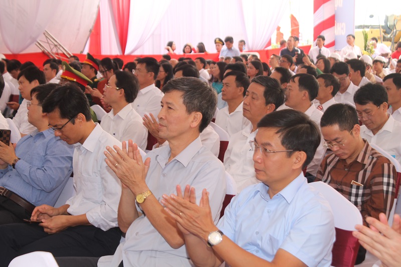 Các đồng chí lãnh đạo Tỉnh ủy, HĐND, UBND tỉnh Nam Định, nguyên lãnh đạo Bộ Xây dựng, nguyên lãnh đạo tỉnh Nam Định về dự lễ khởi công - Ảnh: Hồ Thanh