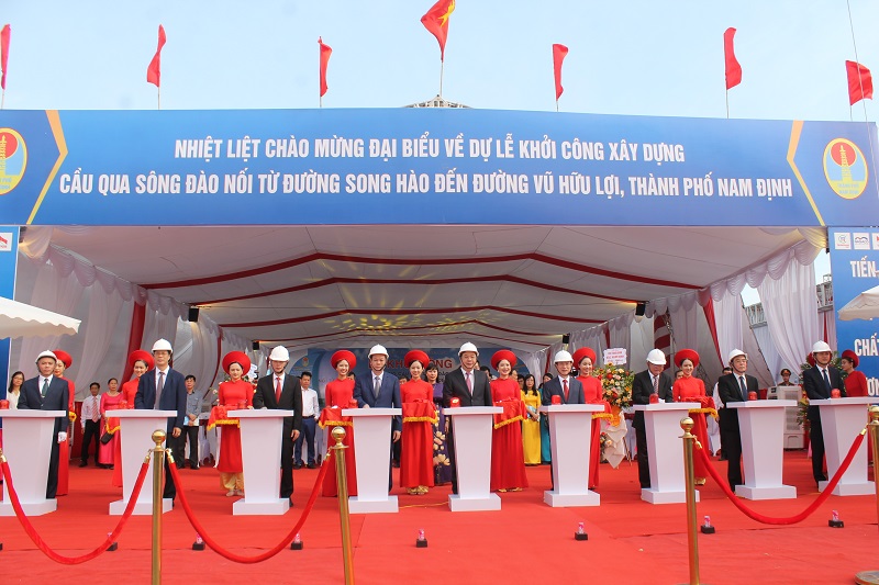 Một số hình ảnh tại lễ khởi công xây dựng cầu qua sông Đào nối từ đường Song Hào đến đường Vũ Hữu Lợi, thành phố Nam Định: