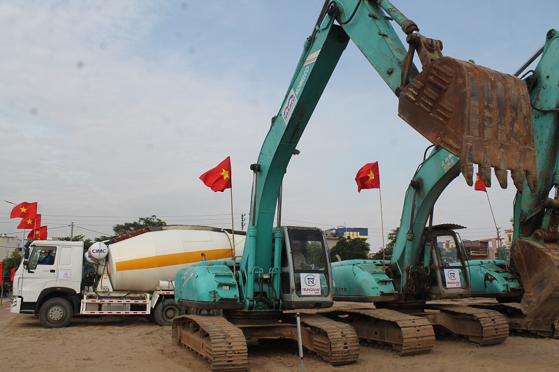 Các phương tiện, trang thiết bị hiện đại phục vụ thi công tại buổi lễ