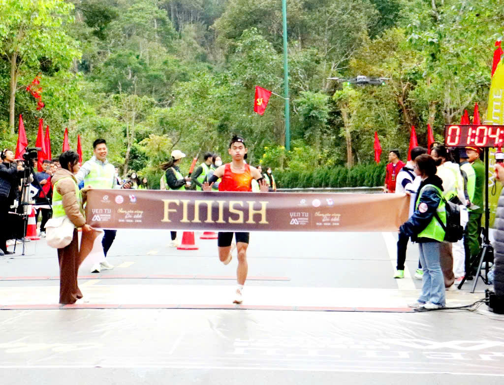 VĐV đầu tiên về đích, chinh phục thành công cự ly 21km.