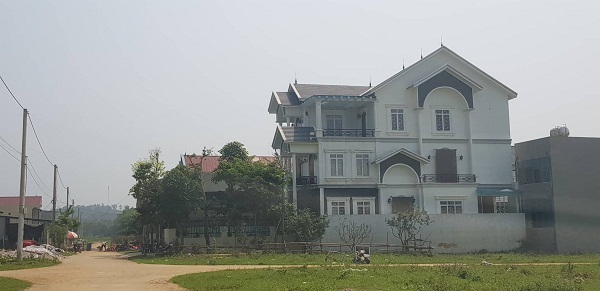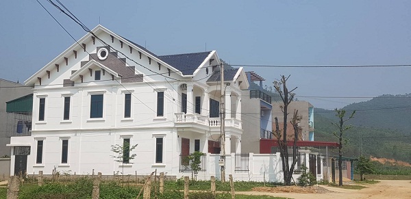 | Một số căn biệt thự được xây sừng sững trong thị trấn huyện. |