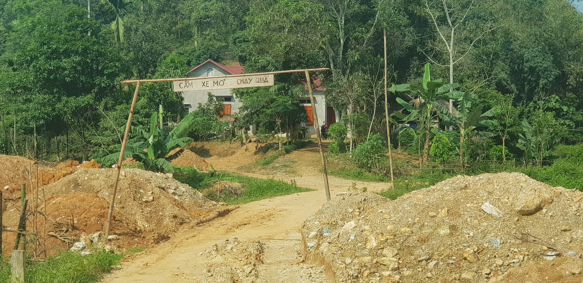 Người dân ngán ngẩm đến nỗi phải dựng biển báo cấm các xe mỏ chạy qua.