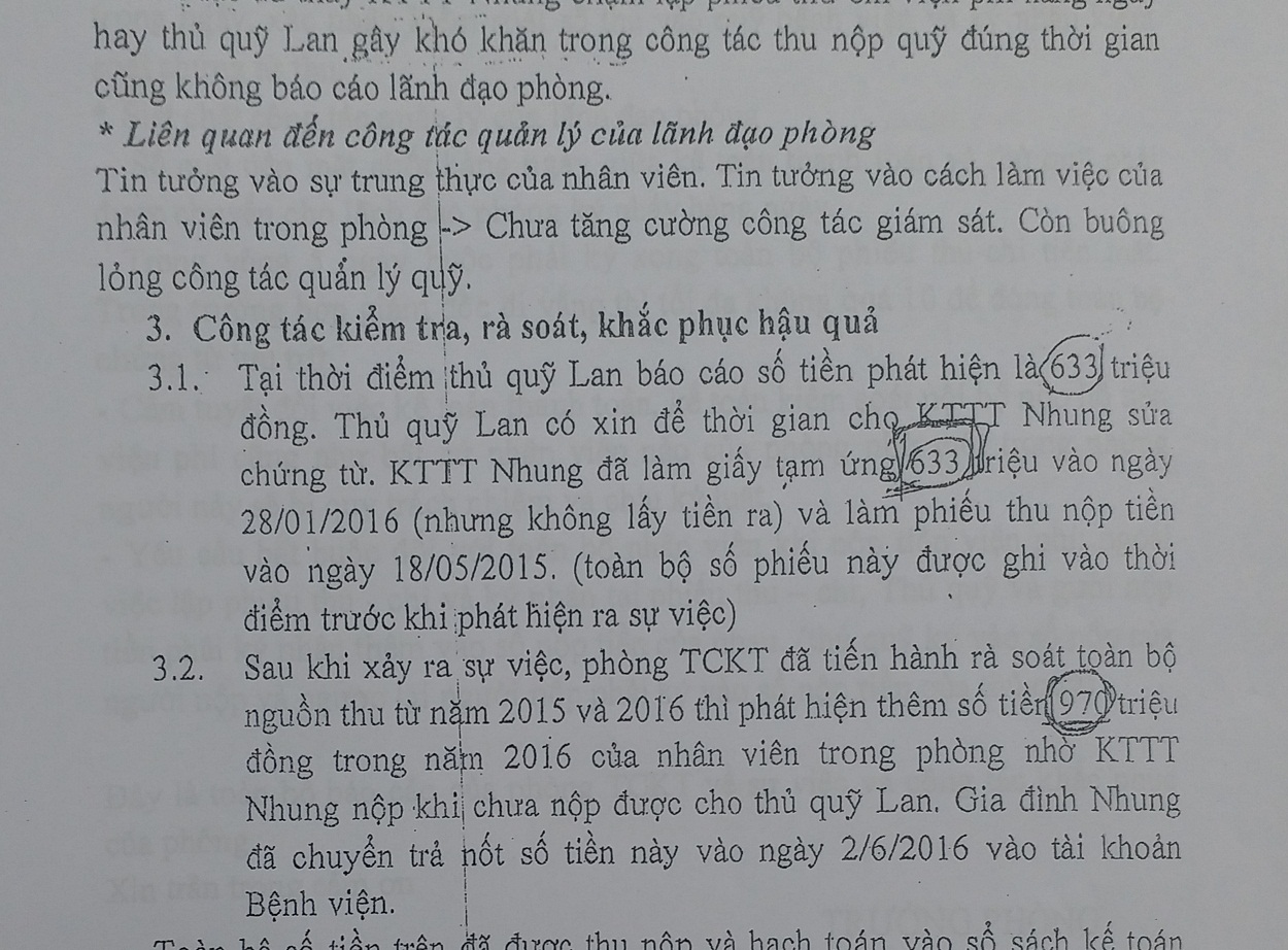 Tuy nhiên, đối với Tạp chí điện tử Hòa Nhập, bà Q đã chủ động tìm đến gửi đơn và trình bày “nỗi oan ức” của mình sau gần 2 năm chịu đựng sự “trù dập” của giám đốc bệnh viện Nguyễn Văn Kính. Bà Q không dấu được mệt mỏi, trình bày: “Sau một thời gian kìm chế mong tìm được hướng giải quyết nội bộ về vụ việc nhưng không thành, ngày 27/9/2018 tôi đã chính thức làm đơn kiến nghị gửi Bộ trưởng Bộ Y tế nhưng mãi đến nay chưa thấy xem xét, giải quyết. Nội dung đơn, tôi kiến nghị Bộ trưởng xem xét một số vấn đề liên quan đến công tác quản lý và điều hành của đồng chí giám đốc bệnh viện, trong đó có việc để thất thoát gần 3,9 tỷ đồng viện phí; bổ nhiệm nhiều trường hợp chưa đủ các điều kiện theo quy định của Bộ Y tế; lấy lý do tôi bị kỷ luật, giám đốc bệnh viện đã đẩy tôi từ vị trí một Phó trưởng phòng, là đảng ủy viên, xuống làm nhân viên ở một bộ phận không liên quan đến chuyên ngành đào tạo rất vô nguyên tắc, để bổ nhiệm cô Lê Chi Lan lên thay vị trí quản lý không theo một quy chuẩn nào”.