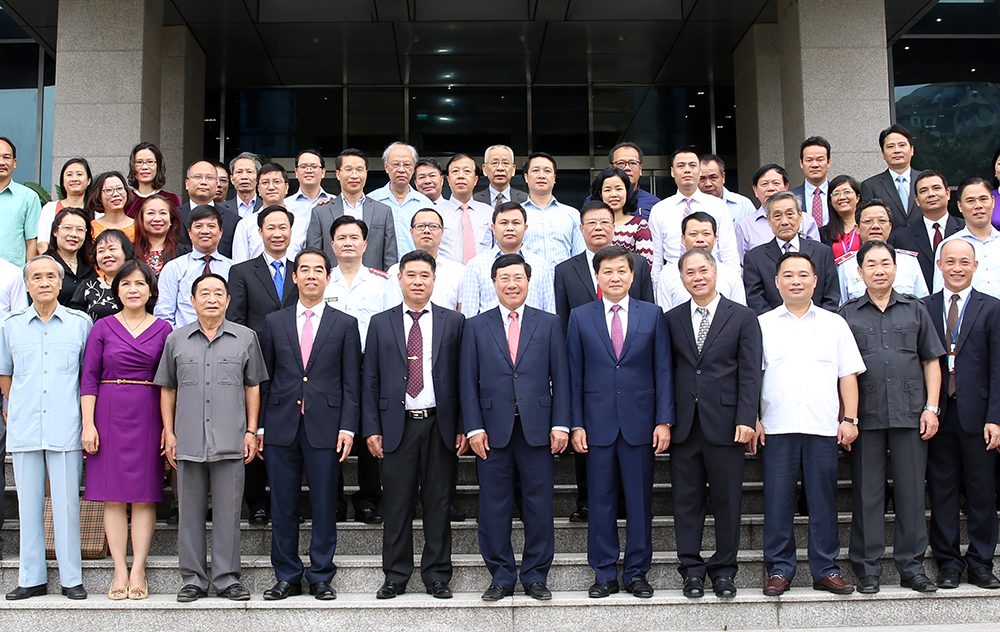 | Phó Thủ tướng Phạm Bình Minh, Tổng Thanh tra Chính phủ và các cán bộ Thanh tra Bộ Ngoại giao qua các thời kỳ. Ảnh: VGP/Hải Minh |