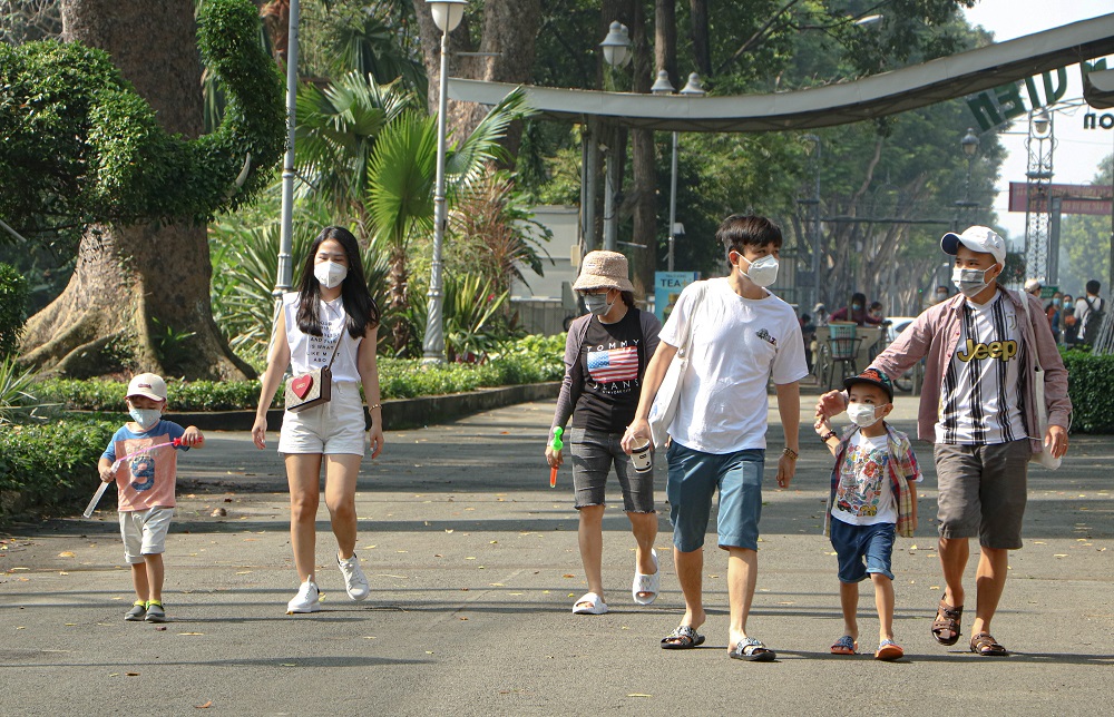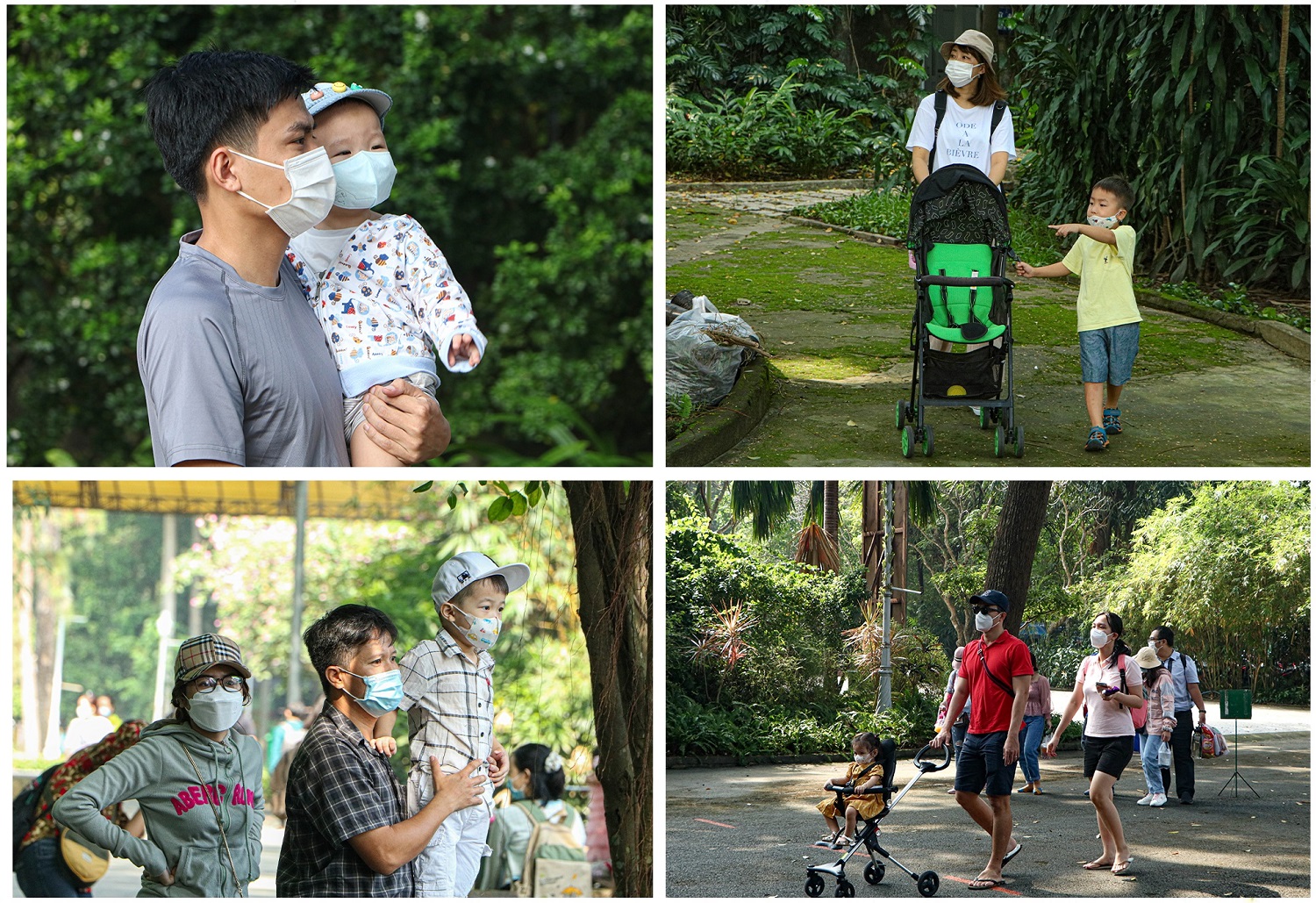 Người dân đưa trẻ em cùng đến tham quan Thảo cầm viên trong ngày đầu mở cửa trở lại.