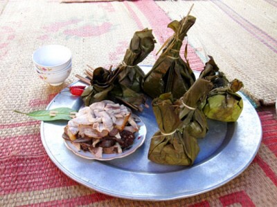 Tiếp đến là khâu chuẩn bị lá gói. Có thể dùng lá dong hoặc lá chuối rừng, thông thường dùng lá chuối rừng hơ qua lửa cho lá mềm để khi gói mọc không bị nứt. Ngoài ra còn có gia vị khác như xúp, mì chính, hạt tiêu rừng (mắc khén)…
