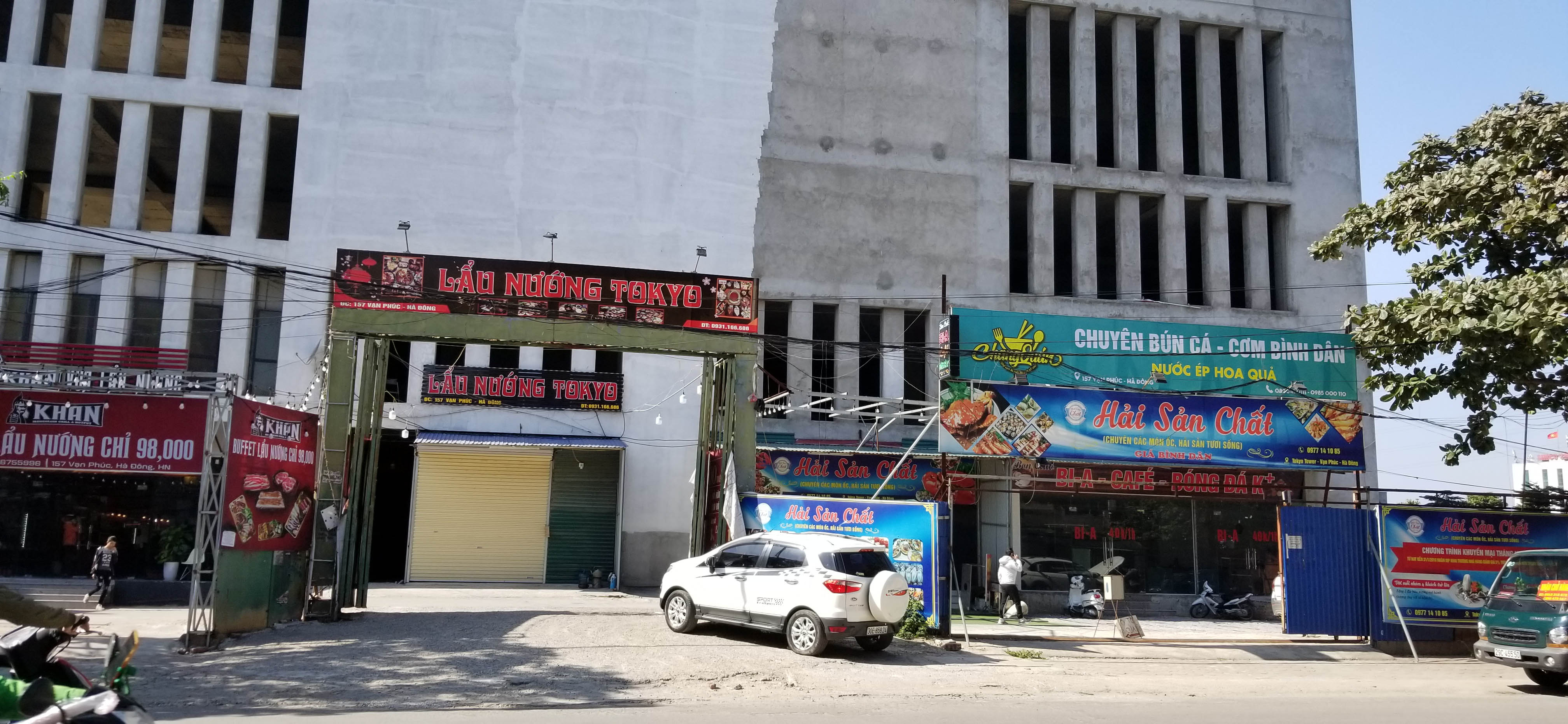 Để tìm hiểu rõ hơn, PV đã đến tìm hiểu thực tế tại dự án và ghi nhận: Dự án với tổ hợp toà nhà chung cư mới chỉ xây xong phần thô, các công đoạn hoàn thiện vẫn chưa được CĐT thực hiện. Tuy nhiên, tầng 1 của toà nhà đã được đưa vào hoạt động kinh doanh với hệ thống các cửa hàng ăn uống lẩu nướng Tokyo, KHAN vua lẩu nướng, tiệm cafe bóng đá, …