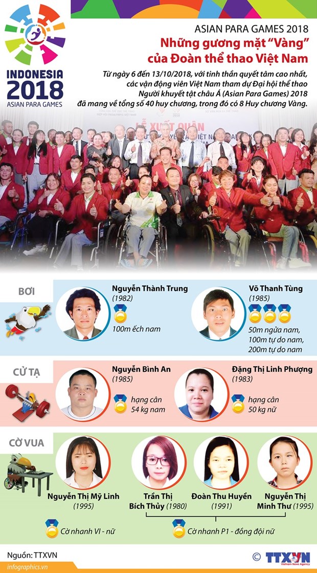 Những năm qua, thể thao người khuyết tật đã đóng góp không nhỏ vào bảng vàng thành tích của thể thao Việt Nam. Rất nhiều gương mặt vận động viên người khuyết tật đã được vinh danh trên các đấu trường thể thao khu vực và quốc tế.