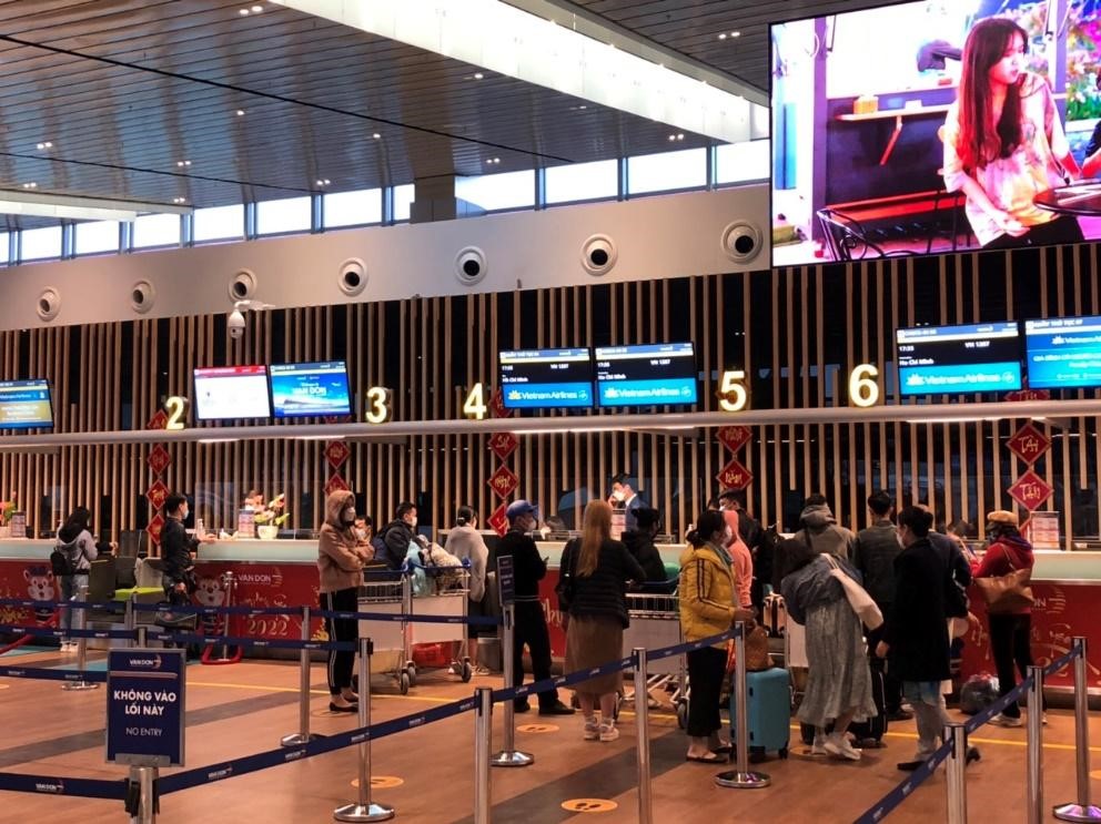 Hành khách làm thủ tục check-in tại Sân bay quốc tế Vân Đồn.