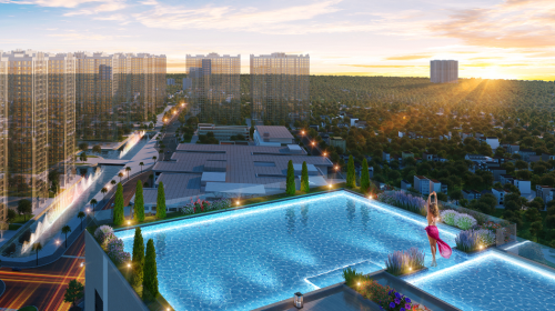 Ngoài ra, bể bơi vô cực - tiện ích thường có ở những resort hạng sang cũng hiện hữu trên tầng mái. Cư dân có thể tận hưởng cảm giác bơi lội trong làn nước mát lành, vừa được ngắm nhìn hoàng hôn rực rỡ trên sông Hồng.
