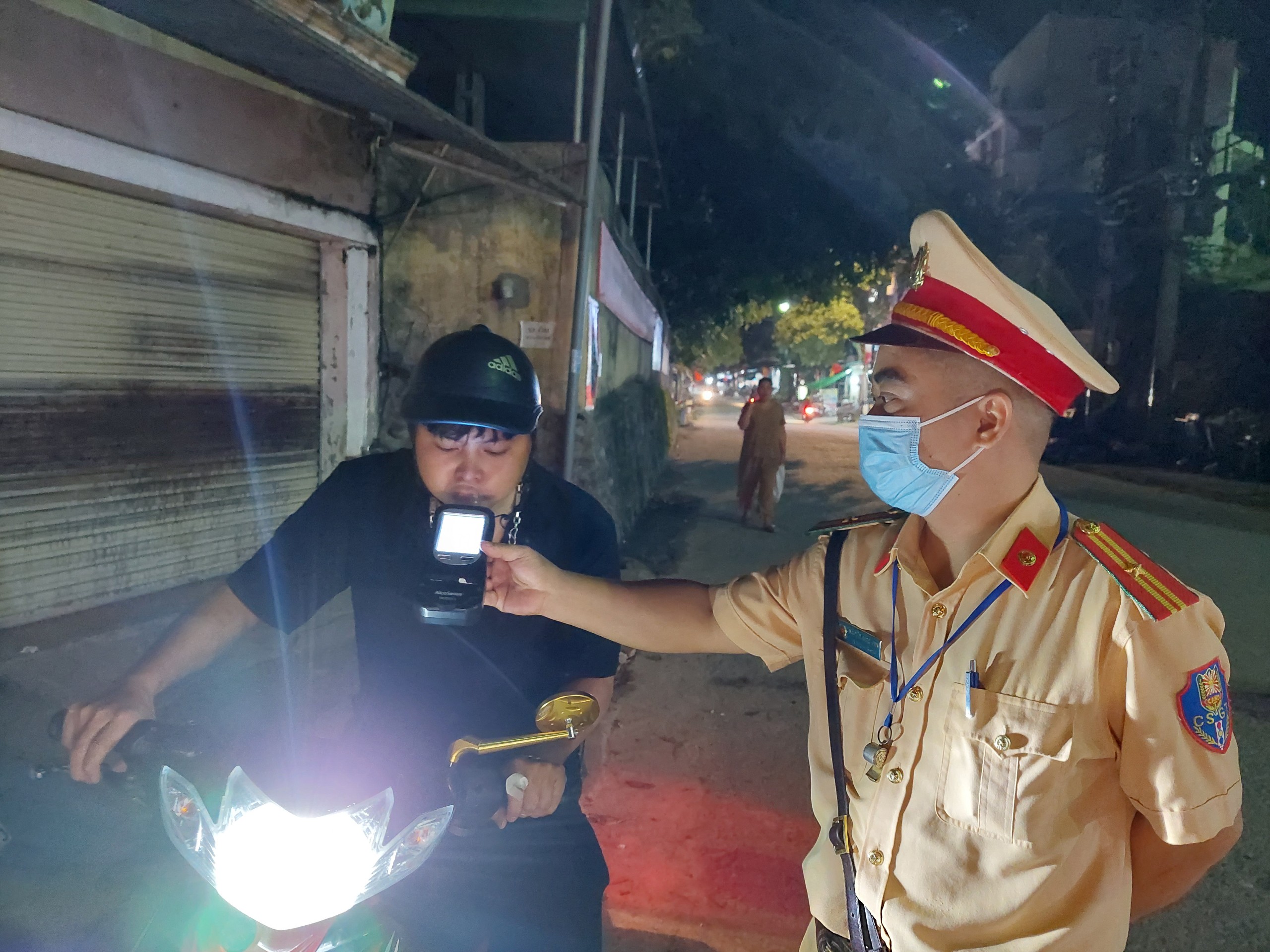 Chỉ ít phút triển khai đội hình, tổ công tác ra hiệu lệnh dừng xe máy mang BKS 23F1 -016.xx do một người đàn ông điều khiển lưu thông hướng UBND huyện Hoàng Su Phì đi Công an huyện Hoàng Su Phì. Ngay sau khi dừng xe, Tổ công tác thông báo kiểm tra chuyên đề nồng độ cồn, còn người đàn ông này nói mới đi liên hoan với bạn nhưng miệng phả ra nồng nặc mùi "đặc trưng" của người sử dụng rượu bia.