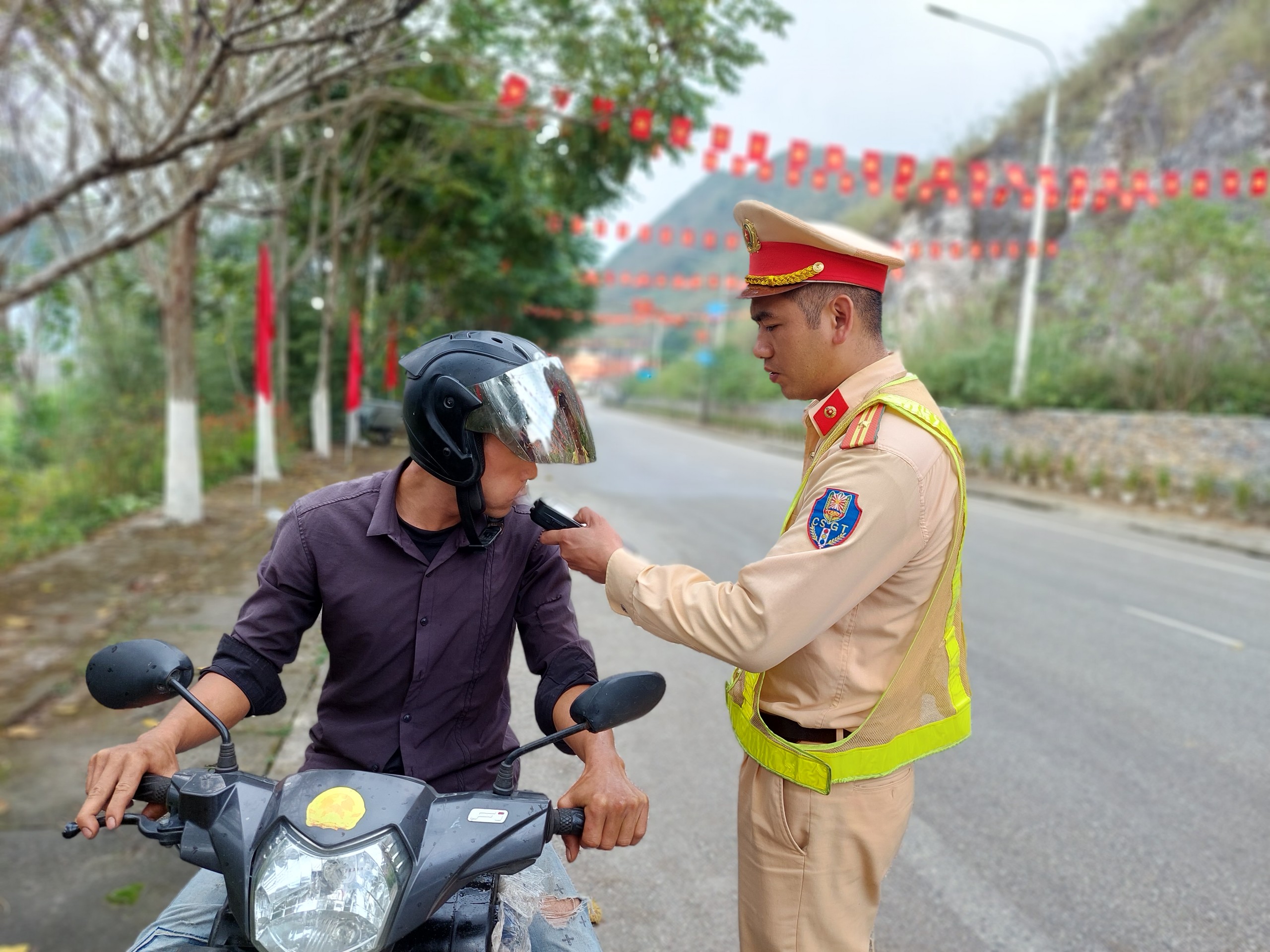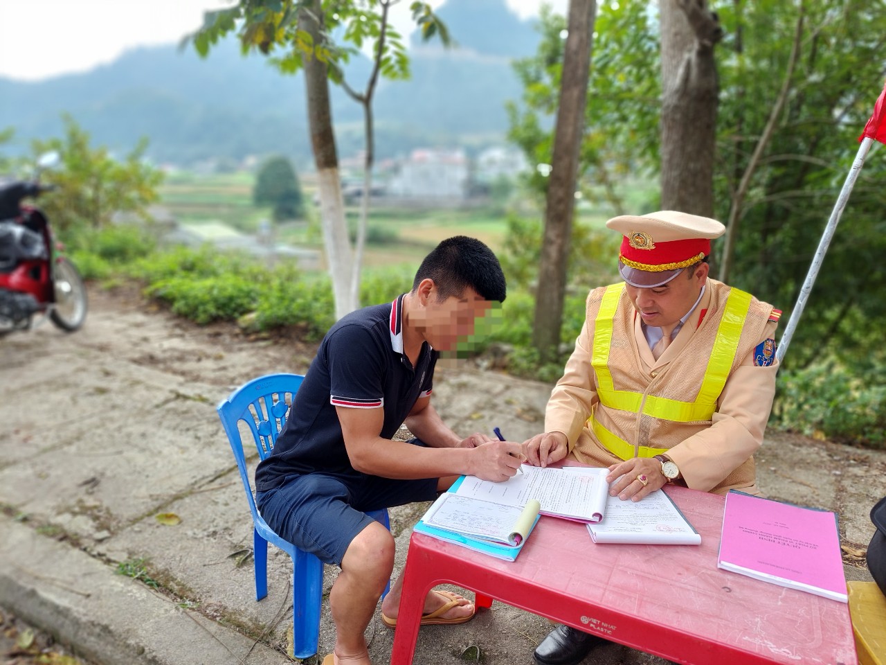 Chỉ ít phút triển khai đội hình, tổ công tác ra hiệu lệnh dừng xe máy mang BKS 23F1 -016.xx do một người đàn ông điều khiển lưu thông trên quốc lộ 4C. Ngay sau khi dừng xe, Tổ công tác thông báo kiểm tra chuyên đề nồng độ cồn, còn người đàn ông này nói mới đi ăn cỗ về nhưng miệng phả ra nồng nặc mùi "đặc trưng" của người sử dụng rượu bia.