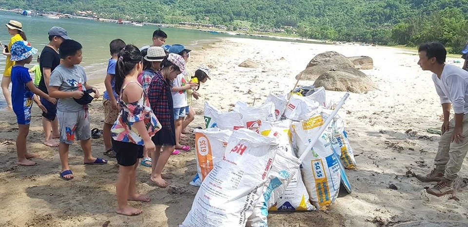 Sáng 3/5, tại bãi biển Sơn Trà, Đà Nẵng, nhóm cứu hộ sinh vật hoang dã SASA phối hợp với phụ huynh để tổ chức cho các em học sinh lớp 2 trường Tiểu học Công nghệ Giáo dục Hà Nội (CGD) cùng nhau dọn rác, trả lại sự sạch đẹp, hoang sơ của bãi biển này.