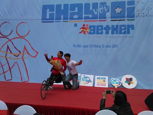HOANHAP.VN - Sáng 3/12, tại Hồ Gươm - Hà Nội đã diễn ra Cuộc thi “Chạy với tôi - 2GETHER 2017”, với sự tham gia của trên 1.000 người yêu chạy bộ chạy cùng với người khiếm thị. Chương trình được tổ chức nhằm hưởng ứng 35 năm “Ngày Quốc tế người khuyết tật” (3/12/1982 - 3/12/2017).