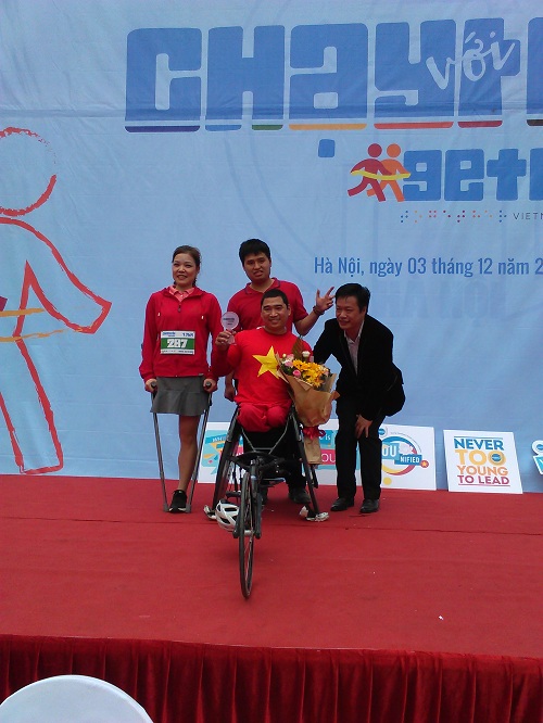 Tặng hoa cho thành viên đi xe lăn duy nhất tham gia cuộc thi