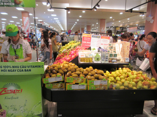 | Quầy hoa quả tại siêu thị Aeon Long Biên (Hà Nội). |