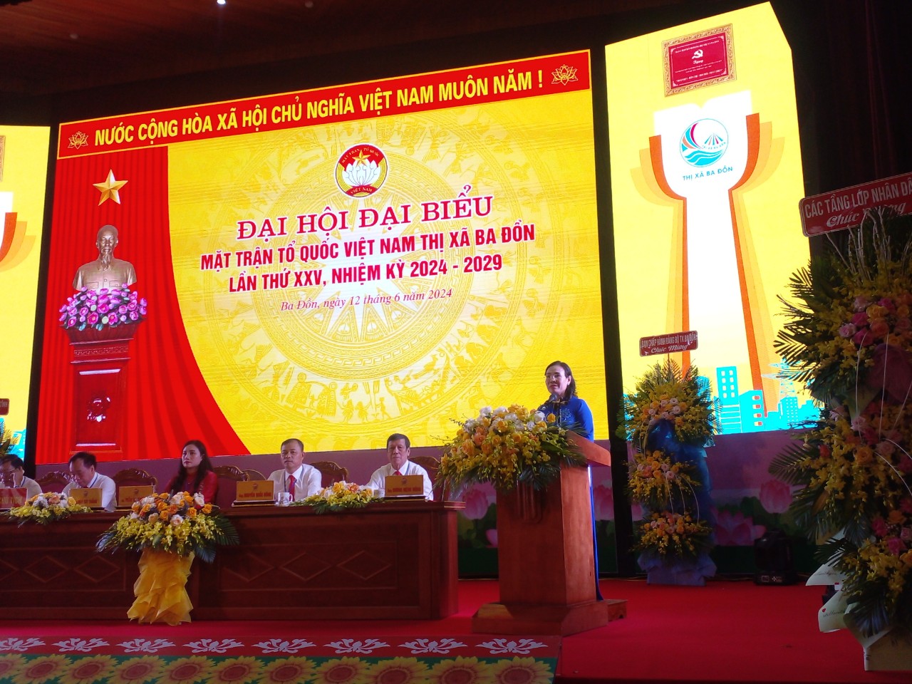 Sáng ngày 12/6, thị xã Ba Đồn tổ chức Đại hội đại biểu Mặt trận Tổ quốc Việt Nam thị xã Ba Đồn, lần thứ XXV, nhiệm kỳ 2024-2029. Tham gia Đại hội đại biểu Mặt trận Tổ quốc Việt Nam thị xã Ba Đồn có bà Phạm Thị Hân –UVTV tỉnh ủy - Chủ tịch UBMTTQVN tỉnh, các đại biểu trong Ban Thường trực UBMTTQVN tỉnh; về phía thị xã có ông Trương An Ninh-UVTV tỉnh ủy-Bí thư Thị ủy; các lãnh đạo Thị ủy; UBND thị xã Ba Đồn, đại diện lãnh đạo các ban, ngành, đơn vị, địa phương, và các đại biểu đại diện cho các tầng lớp nhân dân trên địa bàn thị xã.