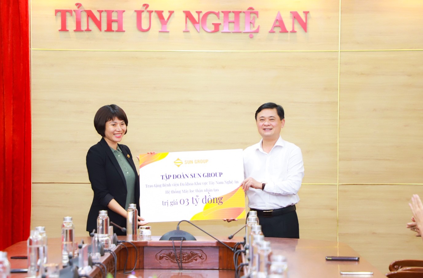 Đại diện cho tỉnh, ông Thái Thanh Quý, bí thư Tỉnh uỷ Nghệ An nhận tài trợ từ phía Tập đoàn Sun Group. Hệ thống máy móc sẽ được nhà cung ứng trực tiếp vận chuyển và lắp đặt tại bệnh viện Đa khoa khu vực Tây Nam Nghệ An.