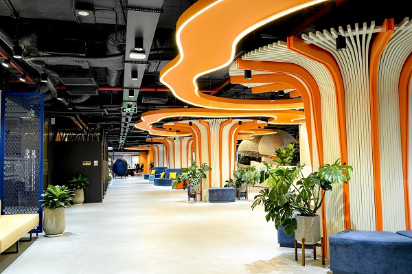 Thay vì ngăn cách bởi những bức tường hay các vách ngăn, văn phòng “Agile Working” được chia thành nhiều không gian làm việc mở với hình thức, phong cách khác nhau (yên tĩnh, hội họp, trò chuyện…) để tất cả cán bộ nhân viên gia tăng tính tương tác, tự do lựa chọn không gian làm việc phù hợp, hướng đến hiệu quả cao nhất. Đây cũng là điểm khác biệt nổi bật nhất của văn phòng Khối Ngân hàng số được Ban Tổ chức đánh giá cao.