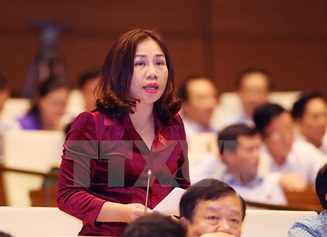 Đại biểu Quốc hội Hà Nam Trần Thị Hiền phát biểu ý kiến. (Ảnh: Nguyễn Dân/TTXVN)