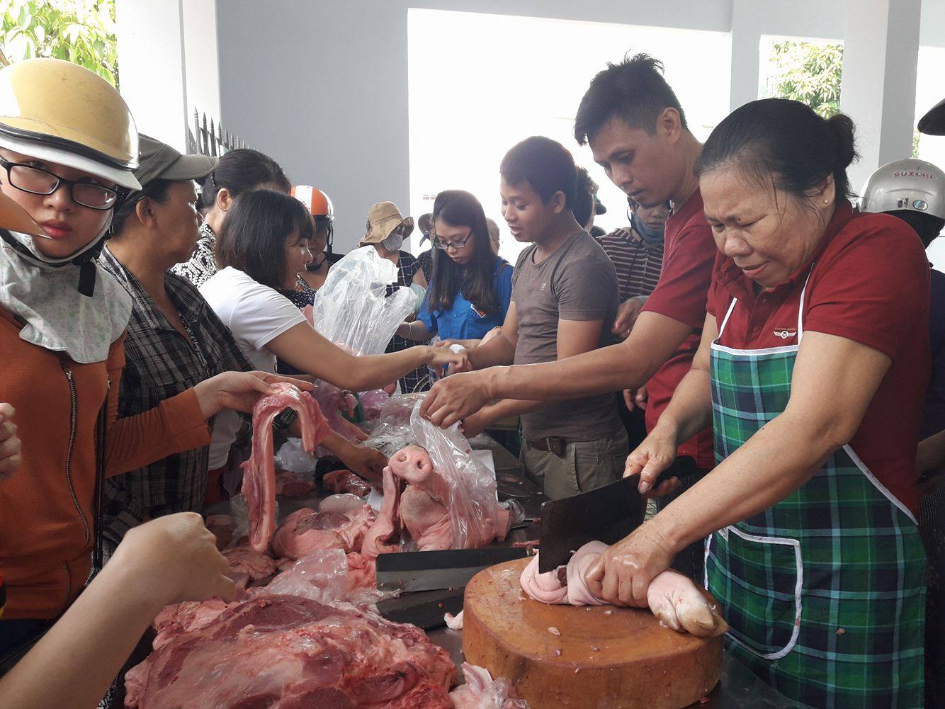 Siêu thị đã bố trí vị trí bán thịt lợn ngay trước mặt tiền để thuận lợi cho người dân vào mua. Thời gian mở bán từ 7 giờ sáng.