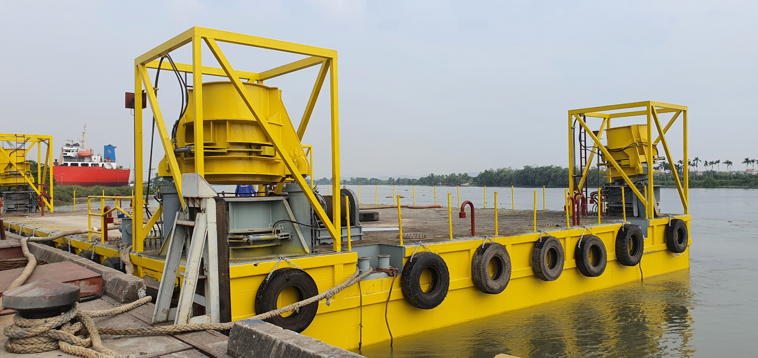 Sàn nâng công trình do Công ty đóng tàu Hồng Hà thiết kế sản xuất để phục vụ đóng cọc, lắp điện gió trên biển.