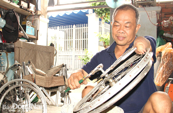 Ông Lê Thành Công (ngụ tại phường Trảng Dài, TP.Biên Hòa, Đồng Nai) bị khuyết tật tay bẩm sinh. Nhiều năm qua với nghề sửa xe, ông đã sửa chữa không biết bao xe lăn hư hỏng, tái chế xe cũ thành xe mới cho người đồng cảnh hay các cụ già.