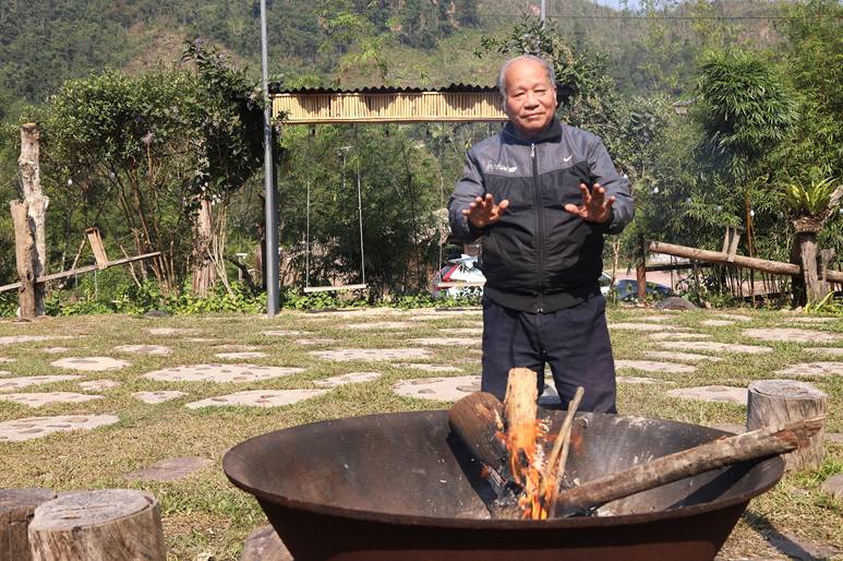 Nhà thơ Trần Nhuận Minh trong chuyến đi thực tế sáng tác ở xã Kỳ Thượng, mùa đông năm 2024.