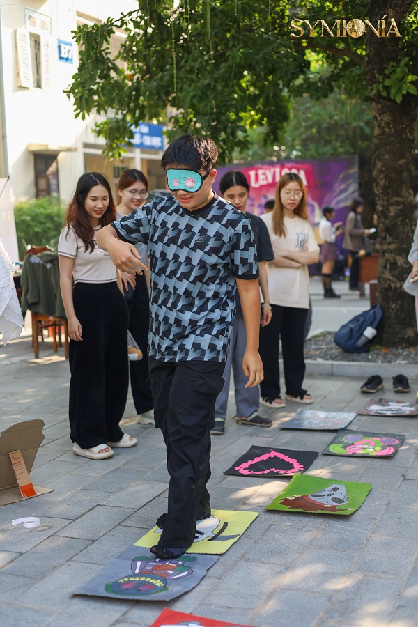 Các bạn sinh viên thích thú với những trò chơi mới lạ.