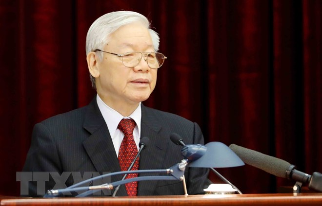 | Tổng Bí thư Nguyễn Phú Trọng phát biểu khai mạc Hội nghị Trung ương 8. (Ảnh: Trí Dũng/TTXVN) |