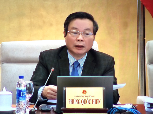 | Phó Chủ tịch Quốc hội Phùng Quốc Hiển điều hành phiên họp. |