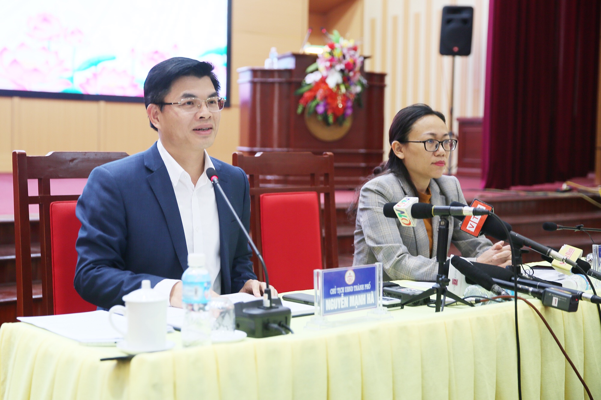 | Chủ tịch UBND thành phố Uông Bí Nguyễn Mạnh Hà trả lời câu hỏi của phóng viên |