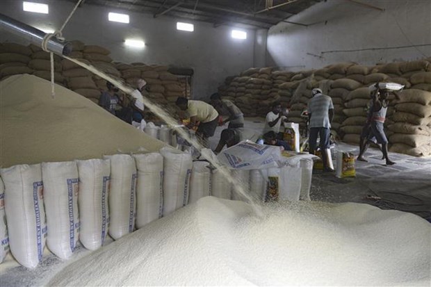 Công nhân làm việc tại nhà máy xay xát gạo ở Hyderabad, Ấn Độ. Ảnh tư liệu: AFP/TTXVN