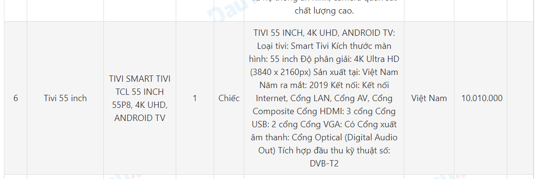 Đơn cử như Smart Tivi 55 TCL 55P8, xuất xứ Việt Nam được nhà thầu đề xuất và Phòng GD&ĐT huyện Đông Anh duyệt mua với giá 16.500.000 đồng/chiếc.