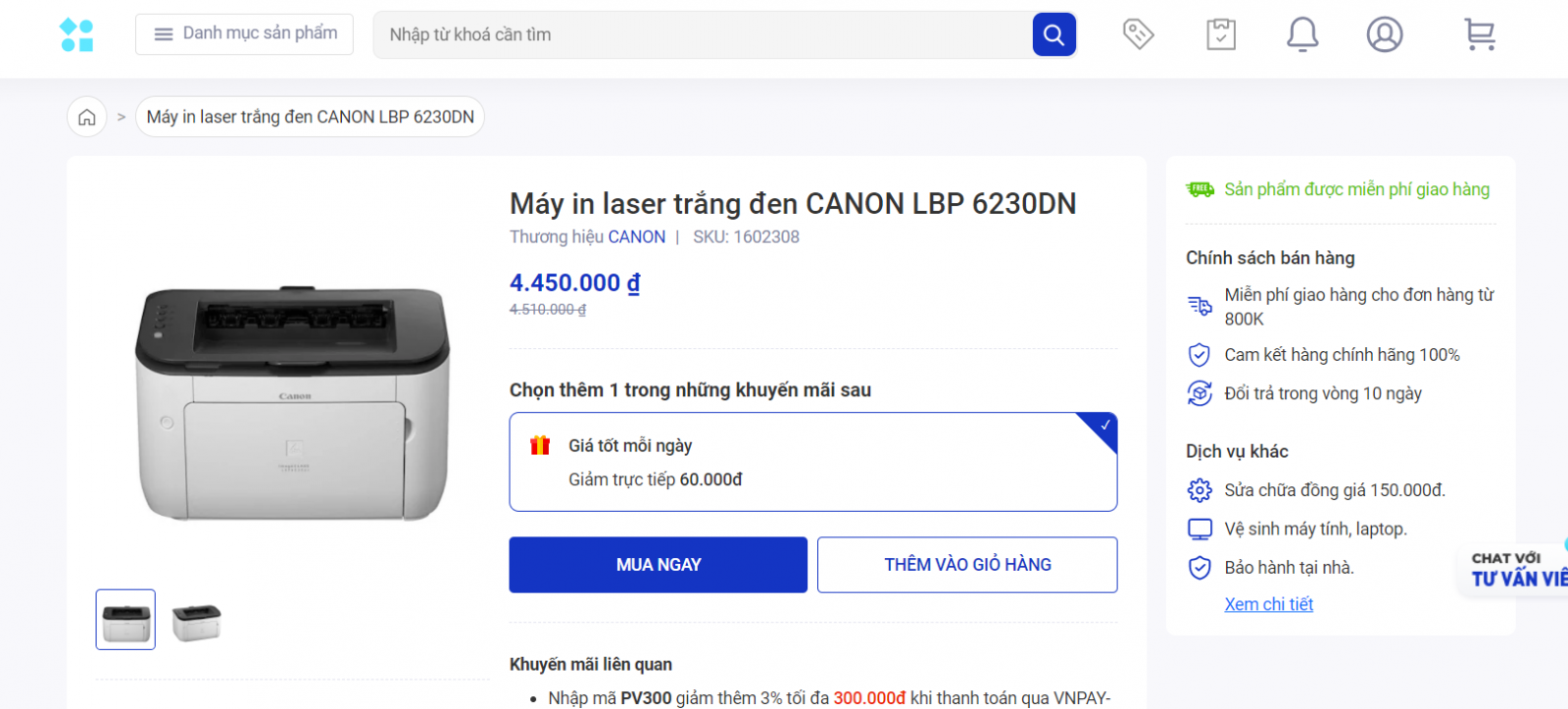 Sản phẩm Máy in laser Canon, LBP 6230DN do Sở TTTT Bình Dương mua với giá thấp hơn khá nhiều so với giá duyệt mua của Sở Giáo dục và Đào tạo An Giang.