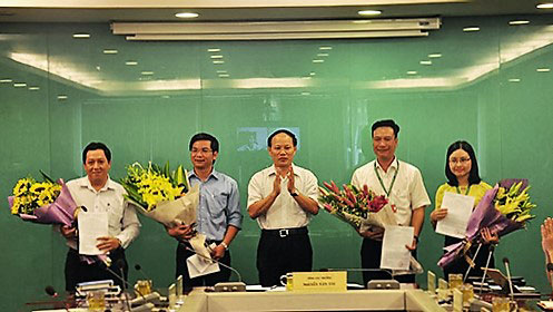 Ông Nguyễn Xuân Quang (bên trái) tại lễ bổ nhiệm vào chức vụ Phó cục trưởng - Ảnh: Tổng cục Môi trường