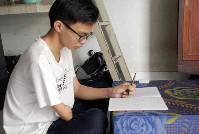Đến tuổi, Bền vào lớp 1 như bạn bè cùng trang lứa, nhưng mọi chuyện với em không mấy dễ dàng. Bền tập viết bằng tay còn lại, vốn không phải tay thuận, nên vô cùng gian nan. “Có lần viết khó quá, bực tức nên em đã đá văng cuốn tập, nhưng mẹ đã động viên em cứ viết từ từ. Em lại tiếp tục tập viết…” - Bền kể.