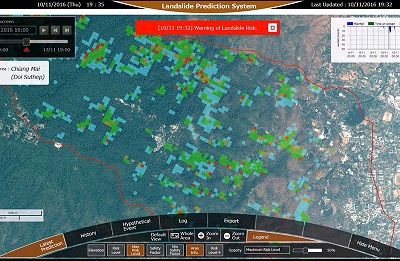 Sau đó, họ tiến hành xác nhận tính hiệu quả của hệ thống dự đoán sạt lở với thử nghiệm ở tỉnh Chiang Mai từ tháng 11/2016 đến tháng 3/2017.