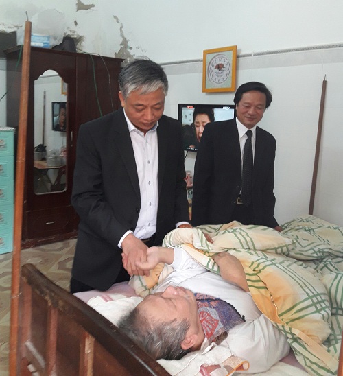 Thứ trưởng ân cần thăm hỏi thương binh 1/4 Phạm Văn Cẩm tại Trung tâm điều dưỡng thương binh Duy Tiên