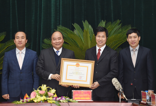 Thủ tướng trao Bằng chứng nhận hoàn thành nhiệm vụ xây dựng nông thôn mới năm 2016 cho thị xã Từ Sơn. Ảnh: VGP/Quang Hiếu