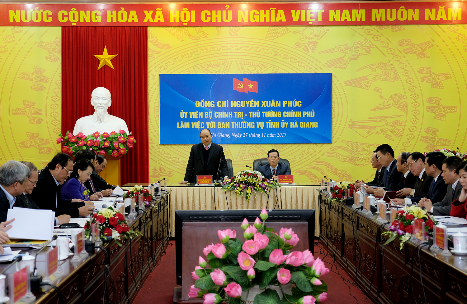 Chiều 27/11, Thủ tướng Nguyễn Xuân Phúc và Đoàn công tác Chính phủ có cuộc làm việc với lãnh đạo chủ chốt tỉnh Hà Giang. Ý kiến thành viên đoàn công tác cho rằng, tỉnh đã xác định đúng hướng đi của mình, đó là tập trung vào phát triển du lịch, nông nghiệp, dược liệu, kinh tế biên mậu. Tuy nhiên, khó khăn lớn đối với Hà Giang là về địa hình, hạ tầng bị chia cắt. Nếu có thể nối cao tốc Hà Nội-Lào Cai tới TP. Hà Giang, cửa khẩu quốc tế Thanh Thủy thì sẽ là bước đột phá đối với sự phát triển của tỉnh.