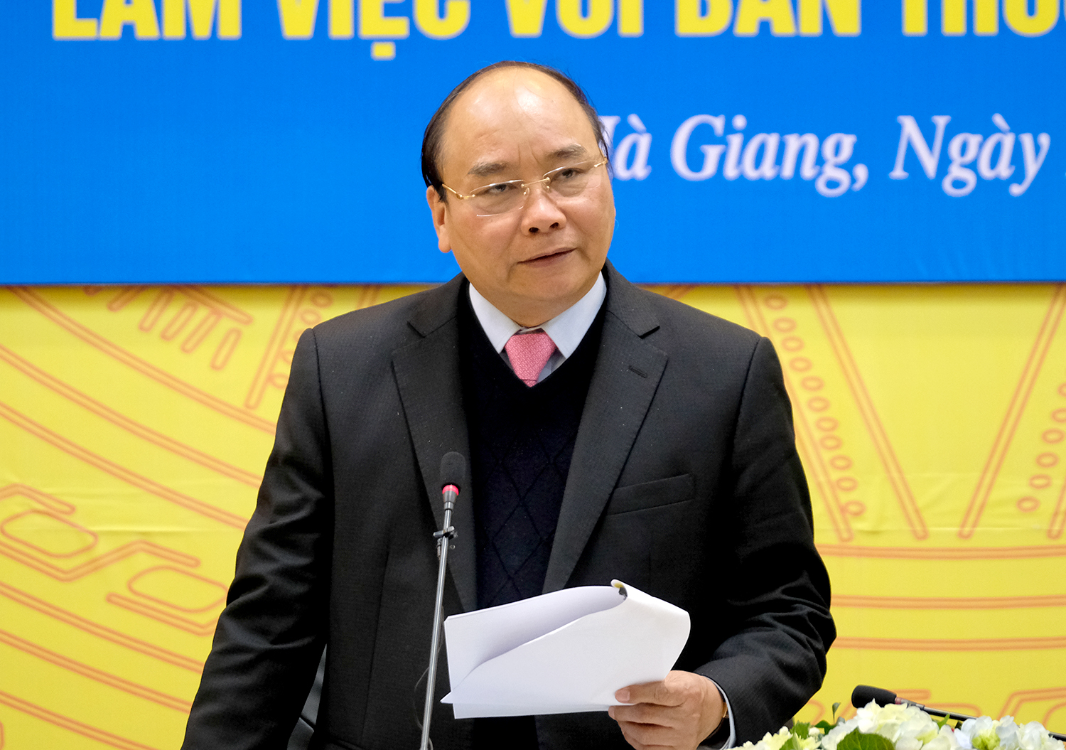| Thủ tướng Nguyễn Xuân Phúc phát biểu chỉ đạo tại buổi làm việc với lãnh đạo chủ chốt tỉnh Hà Giang. Ảnh: VGP/Quang Hiếu |