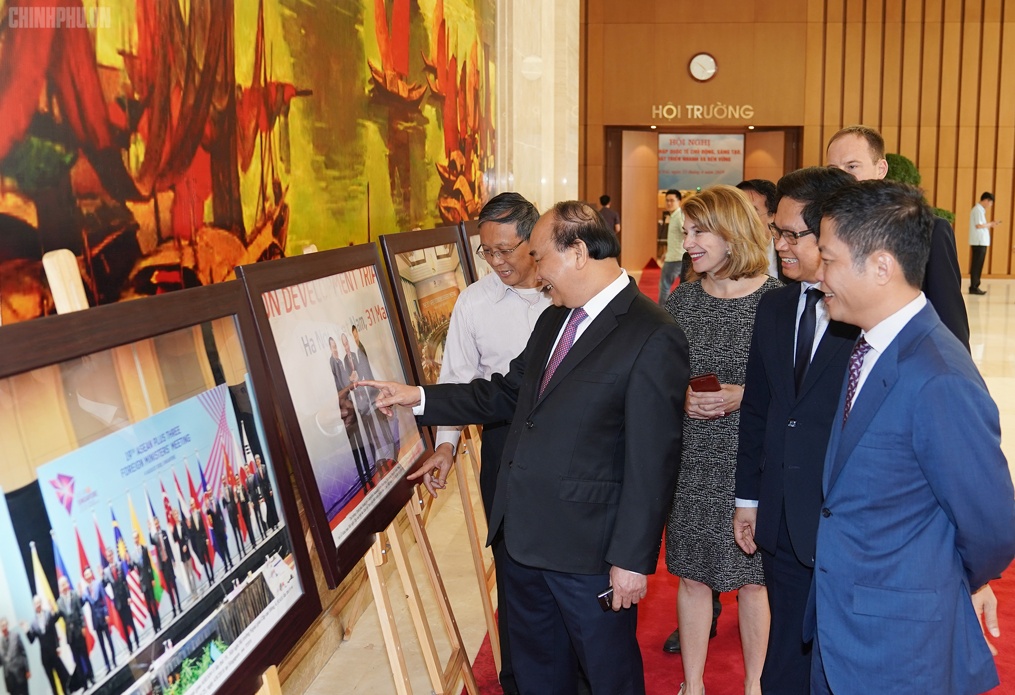 | Thủ tướng Nguyễn Xuân Phúc và các đại biểu tham quan triển lãm ảnh đối ngoại. Ảnh: VGP/Quang Hiếu |