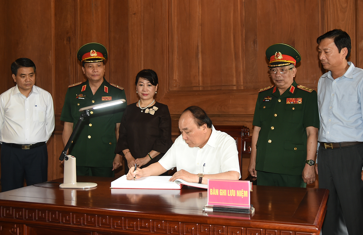 | Thủ tướng ghi sổ lưu niệm tại Khu Di tích K9. Ảnh: VGP/Quang Hiếu |