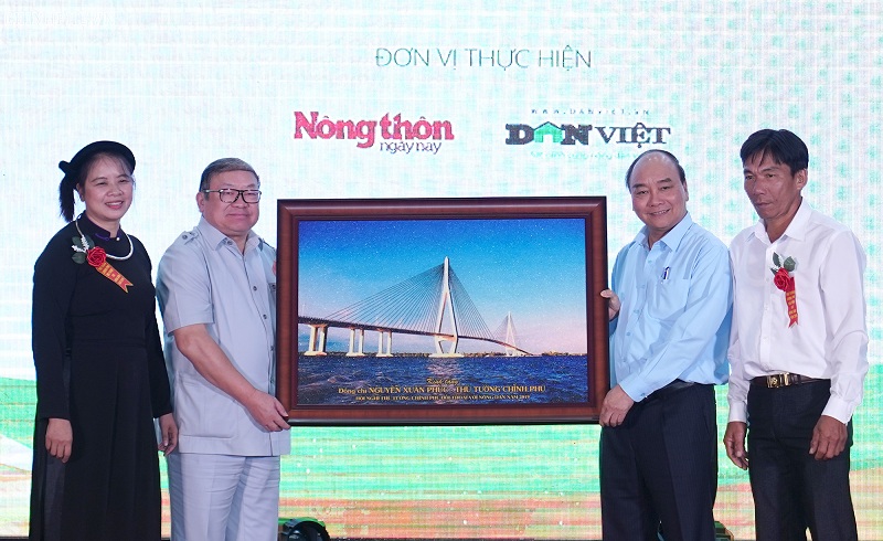 | Thủ tướng nhận quà lưu niệm của Hội Nông dân Việt Nam. Ảnh: VGP/Quang Hiếu |