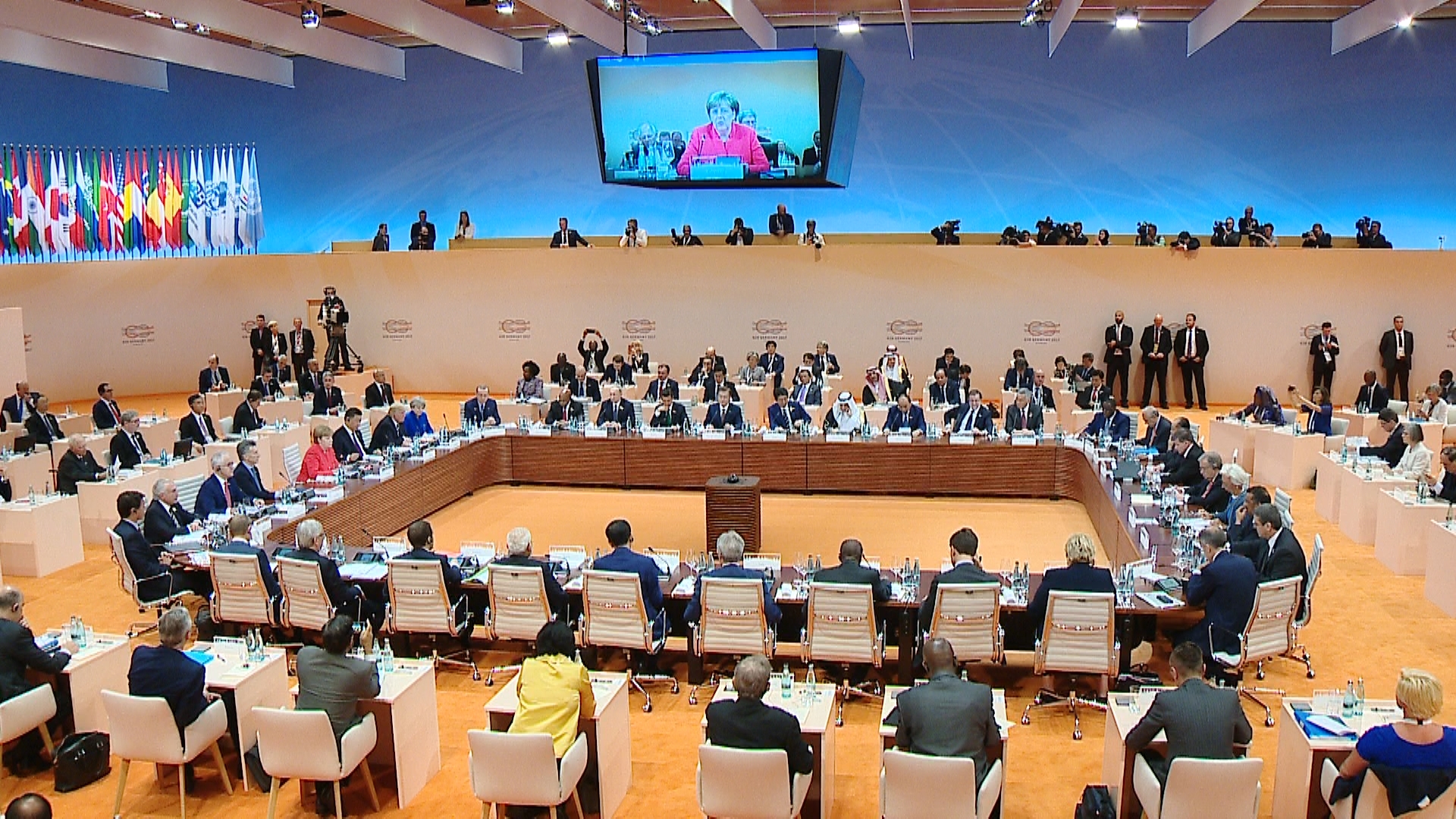 Tại các phiên thảo luận trong ngày đầu tiên của Hội nghị Thượng đỉnh G20, ngày 7/7/2017, Hội nghị đánh giá phục hồi kinh tế thế giới đang tiến triển tích cực hơn, song tốc độ tăng trưởng vẫn chậm hơn kỳ vọng; khẳng định cam kết tăng cường hợp tác, sử dụng đồng bộ các chính sách tài khóa, tiền tệ, cải cách cơ cấu, chống chủ nghĩa bảo hộ nhằm bảo đảm ổn định kinh tế vĩ mô toàn cầu, thúc đẩy tăng trưởng và bao trùm. Hội nghị kêu gọi tăng cường hợp tác triển khai Chương trình nghị sự 2030 về phát triển bền vững; cam kết lồng ghép việc thực hiện Chương trình nghị sự 2030 trong các hoạt động của G20; cam kết giảm khí thải thông qua tăng cường nghiên cứu, phát triển năng lượng sạch, sử dụng hiệu quả năng lượng… Hội nghị đã ghi nhận việc Mỹ rút khỏi Thỏa thuận Paris về biến đổi khí hậu; nhấn mạnh các nước thành viên khác trong G20 tiếp tục thực hiện các cam kết theo Thỏa thuận Paris, trong đó có cam kết hỗ trợ các nước đang phát triển giảm nhẹ tác động và thích ứng với biến đổi khí hậu.