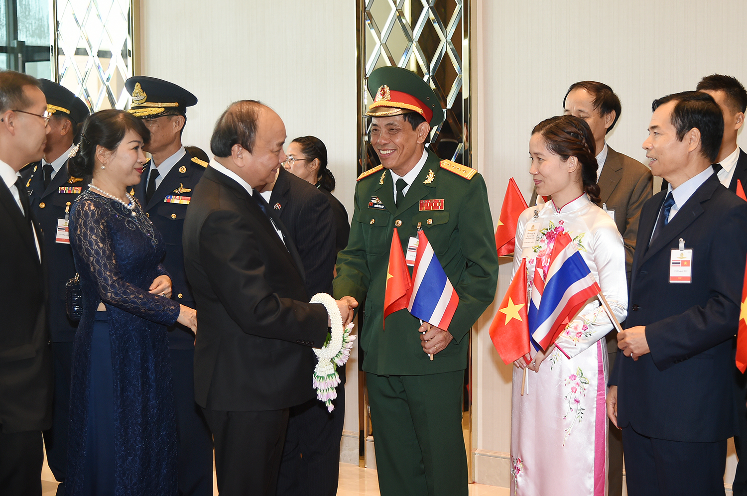 Đón Thủ tướng Nguyễn Xuân Phúc cùng Phu nhân và đoàn cấp cao Việt Nam tại sân bay, về phía Thái Lan có Phó Thủ tướng Thái Lan Prajin Juntong; Bộ trưởng Bộ Xã hội và Kinh tế số Pichet Durongkaveroj và Phu nhân; Đại sứ Thái Lan tại Việt Nam Manopchai Vongphakdi, lãnh đạo Bộ Ngoại giao, đại diện Không quân Hoàng gia Thái Lan. Về phía Việt Nam có Đại biện lâm thời Đại sứ quán Việt Nam tại Thái Lan Phó Hoàng Hân cùng đông đảo cán bộ, nhân viên Đại sứ quán Việt Nam tại Thái Lan.