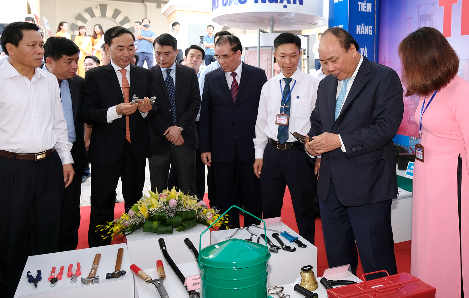 Thủ tướng thăm quan gian trưng bày các sản phẩm chè Thái Nguyên. Ảnh VGP/Quang Hiếu
