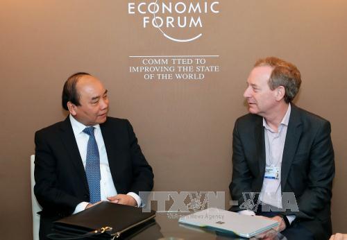 Thủ tướng Chính phủ đã hội kiến với Thủ tướng Áo Christian Kern, gặp làm việc với Chủ tịch WEF Klaus Schwab, Chủ tịch Ngân hàng Phát triển châu Á (ADB) Tahehiko Nakao, Chủ tịch tập đoàn Microsoft Bradford Smith, dự buổi đối thoại với một số tập đoàn lớn và gặp gỡ các hãng thông tấn báo chí hàng đầu.