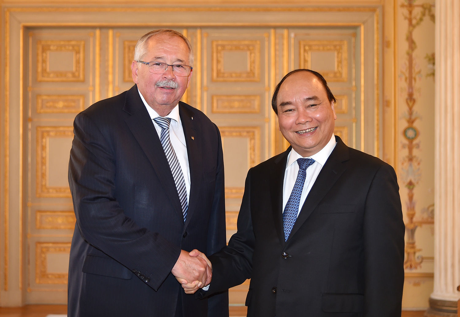 | Thủ tướng Chính phủ Nguyễn Xuân Phúc và Chủ tịch Quốc hội bang Hessen Norbert Kartmann. Ảnh: VGP/Quang Hiếu |